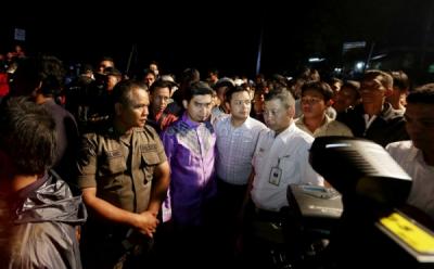 Kondisi kepala Kereta Rel Listrik (KRL) rute Jakarta-Bogor yang keluar rel dan sebagian gerbongnya terguling di kawasan Kebon Pedes, Bogor, Jawa Barat, Minggu 10 Maret 2019.