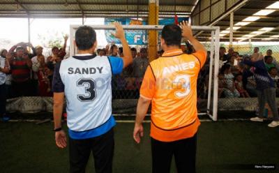 (dari kiri ke kanan) Kasubdit Kesiapsiagaan dan Mitigasi Bencana Kementerian Sosial RI Tetrie Darwi, Bupati Sigi Muhamad Irwan Lapata, Dewan Pembina Yayasan Allianz Peduli Peter van Zyl dan National Director Habitat for Humanity Indonesia Susanto saat melihat contoh Hunian Sementara (Huntara) yang dibangun untuk pegungsi korban Gempa Lombok dan Sigi Sulawesi di Jakarta. Yayasan Allianz Peduli menggelar Konser Musik Lifechanger yang melibatkan 33 musisi ternama Indonesia di Allianz Ecopark, Ancol pada Sabtu 9 Maret 2019 untuk mengumpulkan donasi yang akan digunakan untuk pembangunan Huntara bagi pengungsi korban gempa Lombok & Sigi Sulawesi Tengah.