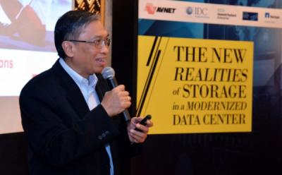 Director Solution and Infrastructure Business Multipolar Technology Jip Ivan Sutanto (kedua kiri) bersama Product Manager Tech Data Indonesia Deka Alpraeska (kiri), IT Head Yamazaki Indonesia Untung Rohwadi (kedua kanan), dan Senior Technology Specialist Hewlett Packard Enterprise Kelvin Frans, berbincang mengenai keunggulan solusi HPE SimpliVity dan HPE Sinergy di sela-sela seminar bertajuk "Accelerating Speed to Market Through Hybrid IT" di Jakarta, Kamis 14 Maret 2019. Seminar ini memaparkan solusi HPE SimpliVity dengan platform hyperconverged, dan HPE Synergy dengan teknologi infrastruktur composable yang mampu mendukung transformasi bisnis dengan mengedepankan kecepatan dan efisiensi menuju "digital ready".
