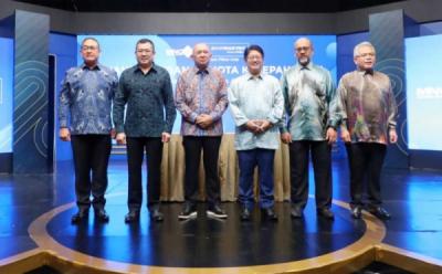 Direktur Bisnis Konsumer BNI Tambok P Setyawati (tengah), Direktur Bisnis Usaha Mikro Kecil dan Menengah (UMKM) dan Jaringan BNI Catur Budi Harto (kiri), dan Direktur Teknologi Informasi dan Operasi BNI Dadang Setiabudi (kanan) menunjukkan aplikasi BNI Experience di Jakarta, Rabu 15 Mei 2019.