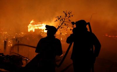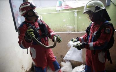 Petugas Damkar Bersihkan Jalan MH Thamrin Pascakerusuhan Aksi 22 Mei