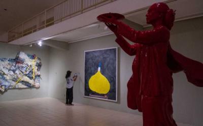 Pameran Seni Rupa di Halte Transjakarta