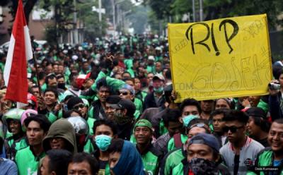 Ratusan Pengemudi Gojek Geruduk Kedubes Malaysia
