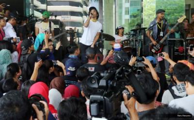 Aksi Damai Srikandi Milenials Bagi-Bagi Bunga di Depan Gedung KPK