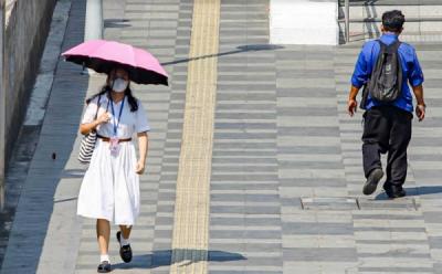 Warga menggunakan payung saat panas yang menyengat di Jakarta, Selasa 22 Oktober 2019. Badan Meteorologi, Klimatologi, dan Geofisika (BMKG) memprediksi wilayah Indonesia akan mengalami panas selama kurang lebih satu minggu ini. Hal ini dikarenakan matahari yang berada dekat dengan jalur khatulistiwa.