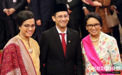 Menteri Kesehatan, Terawan Agus Putranto (kiri) menerima memori jabatan dari pejabat lama, Nila Djuwita Faried Anfasa Moeloek, dalam acara pisah sambut Menkes di Kementerian Kesehatan, Kuningan, Jakarta Selatan, Kamis 24 Oktober 2019 malam. Dokter Terawan ditunjuk Presiden Jokowi sebagai Menteri Kesehatan pada Kabinet Indonesia Maju 2019-2024. (Foto: Okezone/Arif Julianto)