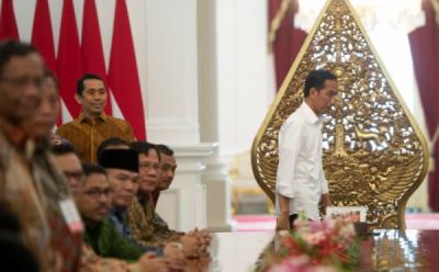 Anggota Komisi II DPR RI Kamrussamad (dua kanan), Managing Director Political Economy and Policy Studies (PEPS) Anthony Budiawan (tengah), Advokat dan Juru Bicara FPI Munarman, Pengamat Politik Ray Rangkuti (kiri), dan moderator, menjadi narasumber pada acara Leadership Outlook 2020 bertajuk Potret Kinerja Pemimpin Potensial yang digagas KAHMI Institute di Jakarta, Selasa 31 Desember 2019. Lima pemimpin bangsa yang menjadi sorotan, yakni Presiden Joko Widodo, Gubernur DKI Jakarta Anies Baswedan, Kepala Staf Angkatan Darat (KSAD) Andika Perkasa, Kabareskrim Listyo Sigit Prabowo dan Wakil Gubernur Jawa Timur Emil Dardak.
