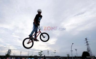 Seorang warga asyik sedang bermain skateboard di Taman Lembah Gurame, Pancoran Mas, Depok, Jawa Barat, Selasa 31 Desember 2019. Taman menjadi ramai dengan adanya fasilitas arena skateboard. Terdapat juga berbagai spot foto yang menarik di taman tersebut. (Foto: Okezone.com/Moch Aditya P P)
