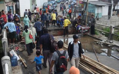 Akibat Banjir, Pasukan Biru Buat Tanggul Sementara di Perumahan Kemang Jaya