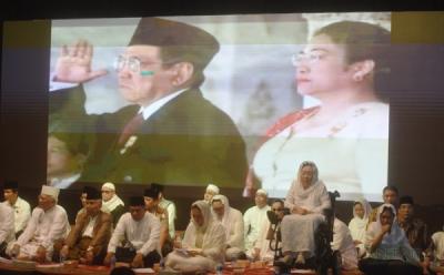 Istri almarhum Presiden RI ke-4, Sinta Nuriyah Abdurrahman menghadiri acara Haul ke-10 Gus Dur yang bertemakan “Pesan Perdamaian di Bumi Bekasi” pada Sabtu, 25 Januari 2020 di Pesantren Motivasi Indonesia, Desa Berungkeng, Setu Kabupaten Bekasi, Jawa Barat. Acara ini juga dihadiri omo Paroki Cikarang, Rm. Antonius Suhardi Antara Pr; Intelektual Nahdlatul Ulama (NU), Gus Ulil Abshar Abdalla; Mubaligh Ahmadiyah Wilayah Jawa Barat 01, Maulana Ma’mun Ahmad Sahib; serta para santri dan masyarakat Jabodetabek. (Foto: Okezone.com/Istimewa)