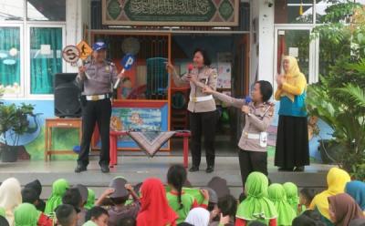 Unit Kamsel Sat Lantas Jaktim menggelar Sosialisasi Keselamatan Berlalu Lintas di SMPN 172, Cakung, Jakarta Timur, Jumat 31 Januari 2020. Sosialisasi ini digelar agar para siswa dapat mengetahui aturan dan keselamatan dalam berlalu lintas. (Foto: Twitter @TMCPoldaMetro)