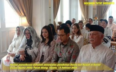 Siti Hardijanti Rukmana atau Mba Tutut mendampingi mas Indra memasang bleketepe atau anyaman daun kelapa sebagai tanda dimulainya prosesi pernikahan Danny Bimo Hendro Utomo (Danny Rukmana) dengan Raiyah Chitra Caesaria, gadis asal Makassar Sulawesi Selatan.