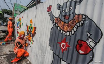 Intip Pasukan Orange Bersihkan Sampah di Kali Grogol