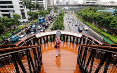 Suasana di kawasan Senayan, Jakarta, Jumat 10 April 2020. Kualitas udara di Jakarta terus membaik, seiring minimnya aktivitas di Ibu Kota. Data situs pemantau polusi udara IQAIR.com, sejak 10 Maret nilai udara di Jakarta berada di kisaran 60-90, berbeda dengan sebelum merebaknya virus Corona yang berada di 101-105 (tidak sehat). (Foto: Okezone.com/Arif Julianto)