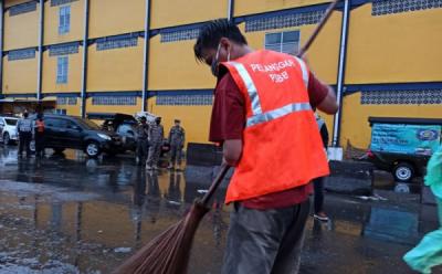 Pelanggar PSBB Bersihkan Pedestrian Jalan KH Wahid Hasyim