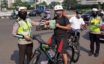 Sat Lantas Jakarta Selatan bersama TNI, Satpol PP dan Dishub melaksanakan kegiatan PSBB di Check Point Layang UI, Jakarta, Senin 6 Juli 2020. Kegiatan tersebut antara lain memberikan imbauan dan teguran tertulis kepada pelanggar PSBB terkait penggunaan masker serta kapasitas penumpang guna cegah penyebaran Virus Covid 19. (Foto: Twitter @TMCPoldaMetro)