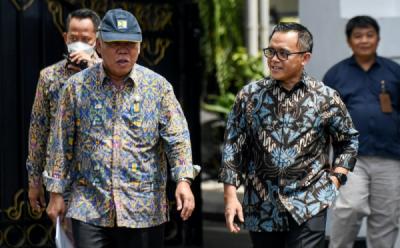 Kepala Badan Nasional Penanggulangan Terorisme (BNPT) Komjen Pol. Dr. Boy Rafli Amar menerima kunjungan Menteri Pendayagunaan Aparatur Negara-Reformasi Birokrasi (Menpan-RB) Tjahjo Kumolo di Kantor BNPT, Sentul, Bogor, Jumat 10 Juli 2020.