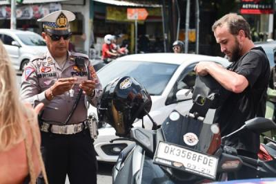 Polisi Tilang Pemotor yang Masih Nekat Masuk Jalur Bus Transjakarta