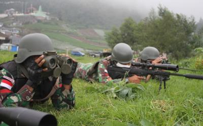 Sejumlah prajurit pasukan khusus Batalyon Intai Amfibi (Taifib) 2 Marinir melakukan latihan Menembak Tempur Reaksi di Lapangan Tembak Internasional FX. Soepramono Bhumi Marinir Karangpilang, Surabaya, Jawa Timur, Selasa 12 Janauri 2021. Latihan tersebut bertujuan untuk mempertajam dan meningkatkan profesionalisme setiap prajurit Batalyon Intai Amfibi 2 Marinir sehingga selalu siap dalam menjalankan setiap tugas yang diemban baik di darat, laut maupun udara. (Foto : Sindo/Ali Masduki) (hru)
