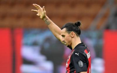 Pemain AC Milan Zlatan Ibrahimovic memperlihatkan tato bergambar singa berukuran besar di punggungnya usai laga melawan Cagliari dalam giornata ke-18 Liga Italia di Sardegna Arena, Selasa 19 Januari 2021, dini hari WIB. AC Milan menang dengan skor 2-0, kedua gol tersebut diborong Ibrahimovic.