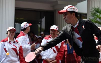 Aksi Menteri I Gusti Ayu Bintang Darmawati Main Pingpong