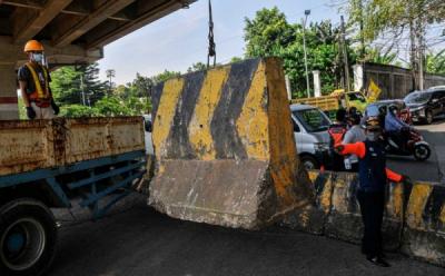 Petugas memperbaiki lampu lalu lintas di penyebrangan orang di Bundaran HI, Jakarta Pusat. Minggu 30 Mei 2021.
