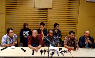 Pihak PT Media Property Indonesia tengah memasang plang sengketa terkait adanya kisruh internal para pemegang saham dalam proyek Gedung Indonesia 1, Jakarta, Selasa 10 Agustus 2021.