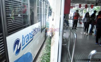Bus Transjakarta menunggu penumpang di halte integrasi sisi Timur Stasiun Tebet, Jakarta Timur, Kamis 16 September 2021.
