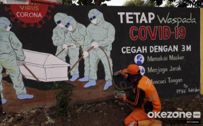 Warga melintas di depan mural yang berisi kritikan di Jakarta Barat, Minggu 19 September 2021.