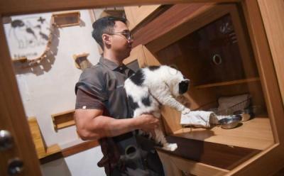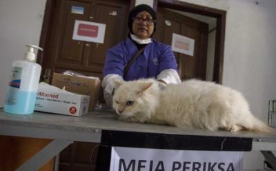 Pedagang menunjukan kucing dagangannya di Pasar Barito, Jakarta Selatan, Sabtu 25 September 2021.
