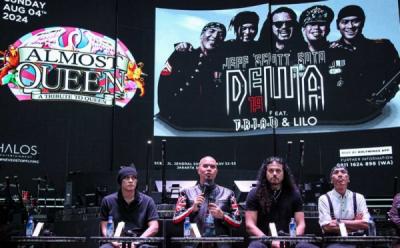 Dewa 19 bersama Once Mekel saat menjadi pengisi acara konser HUT GTV Amazing 19 di Kebon Jeruk, Jakarta Barat, Sabtu 9 Oktober 2021.