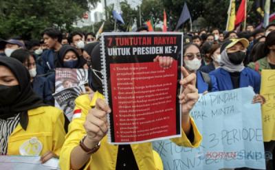 Unjuk rasa yang diikuti mahasiswa dari puluhan kampus tersebut untuk memperingati dua tahun pemerintahan Joko Widodo-Ma'ruf Amin. (FOTO: OKEZONE/ARIF JULIANTO) (ddk)