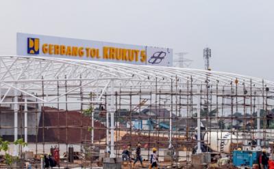 Foto Udara Pembangunan Simpang Susun Tol Krukut yang Menyambungkan Antara Tol Cijago dan Tol Desari