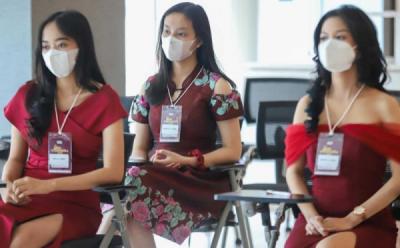 Peserta saat mengikuti audisi secara offline Miss Indonesia 2022 di Tower 3, MNC Studios, Kebon Jeruk Jakarta Barat, Sabtu 26 Februari 2022.