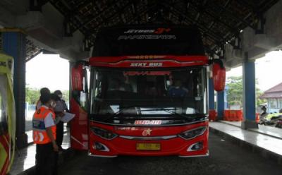 Sejumlah calon pemudik menunggu kedatangan bus Antara Kota Antar Provinsi (AKAP) di sebuah agen Perusahaan Otobus (PO) di Bekasi, Jawa Barat, Sabtu 16 April 2022.