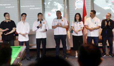 Executive Chairman MNC Group Hary Tanoesoedibjo dan Ketua Umum Persatuan Bulutangkis Seluruh Indonesia (PBSI) Agung Firman Sampurna Bersama Atlet Bulutangkis Indonesia berfoto bersama usai PRESS CONFERENCE KERJASAMA EXCLUSIVE PBSI MNC di Jakarta senin 30 Mei 2022. Sukses menayangkan gelaran yang sama pada tahun lalu, serta kembali konsisten menampilkan dua event kelas dunia dalam mendukung kemajuan bulutangkis indonesia, MNC Group kembali bekerjasama dengan Persatuan Bulutangkis Seluruh Indonesia (PBSI) untuk menjadi official broadcasters turnamen bulutangkis dunia yakni, Daihatsu Indonesia Masters 2022 dan East Ventures Indonesia Open 2022.