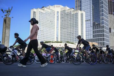 Mendag Zulhas Olahraga Lari di Kawasan Car Free Day Sudirman Jakarta