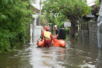 Warga Menggunakan Perahu Karet untuk Menyeberangi Sungai Akibat Banjir Bandang Garut