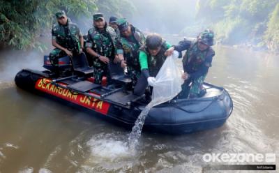 Aksi yang diinisiasi perusahaan tersebut sekaligus mengkampanyekan cinta lingkungan dengan tajuk "Let's Go Blue Campaign" sebagai perusahaan di bidang energi baru terbarukan yang peduli terhadap kelestarian lingkungan dan isu keberlanjutan. (ANTARA FOTO/Fauzan) (ddk)