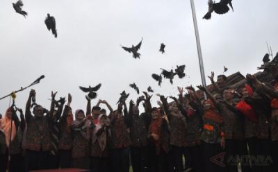 Dalam satu minggu, bengkel kerja tersebut mampu mengolah 30 kilogram kertas bekas menjadi berbagai jenis kerajinan seperti tas, buku catatan, wadah lampu, wadah tisu, yang dijual dari harga Rp3 ribu hingga Rp60 ribu. (ANTARA FOTO/Raisan Al Farisi) (ddk)