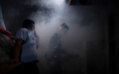 Pengasapan tersebut dilakukan untuk mencegah mewabahnya DBD di kawasan itu. (ANTARA FOTO/Rahmad) (ddk)