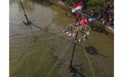 Lomba tersebut diselenggarakan dalam rangka semarak Hari Kemerdekaan RI yang ke- 77. (ANTARA FOTO/Muhammad Iqbal) (ddk)