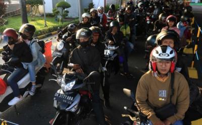 Otoritas Pelabuhan menutup sementara penyeberangan dari Pelabuhan Gilimanuk, Bali menuju ke Pelabuhan Ketapang, Jawa Timur dan sebaliknya mulai pukul 12.35 WITA hingga pukul 16.30 WITA akibat cuaca buruk sehingga terjadi antrean panjang kendaraan. (ANTARA FOTO/Nyoman Hendra Wibowo) (ddk)