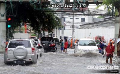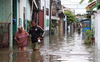 Potret Siswa Sekolah Terobos Banjir yang Merendam Kawasan Narogong Bekasi