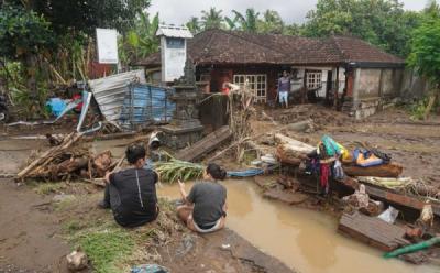 Warga Bersihkan Sisa Lumpur Banjir Bandang yang Menerjang Desa Tegal Cangkring Jembrana Bali