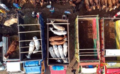 Para pedagang saat menunggu pembeli di pasar hewan Barito, Kebayoran Lama, Jakarta, Selasa 25 Oktober 2022.