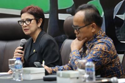Diskusi Forum Legislasi dengan tema "Membaca Arah Revisi UU ITE, Akankah Ruang Multitafsir Dipersempit?". (FOTO: OKEZONE/ARIF JULIANTO) (ddk)