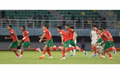 Selebrasi pemain timnas Kroasia usai merebut juara ketiga Piala Dunia 2022. Bermain Stadion Internasional Khalifa, Qatar, Vatreni julukan Kroasia berhasil meraih kemenangan atas Singa Atlas julukan Maroko dengan skor tipis 2-1.