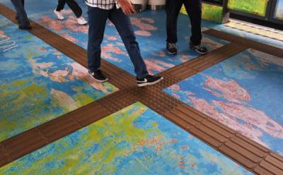 Petugas berjalan di jalur integrasi menuju halte TransJakarta, Jatinegara, Jakarta Timur, Rabu (4/1/2023). PT TransJakarta mengoperasikan Halte TranJakarta 2 yang berintegrasi dengan Stasiun Kereta Api Jatinegara untuk mempermudah penumpang berpindah setelah menggunakan moda bus menuju kereta api ataupun sebaliknya.