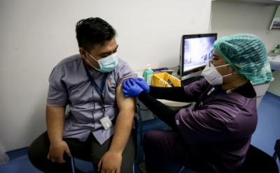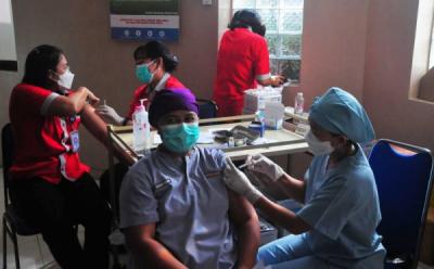 Vaksinator menyuntikkan vaksin COVID-19 di Qbig BSD, Tangerang, Banten, Selasa 31 Januari 2023.